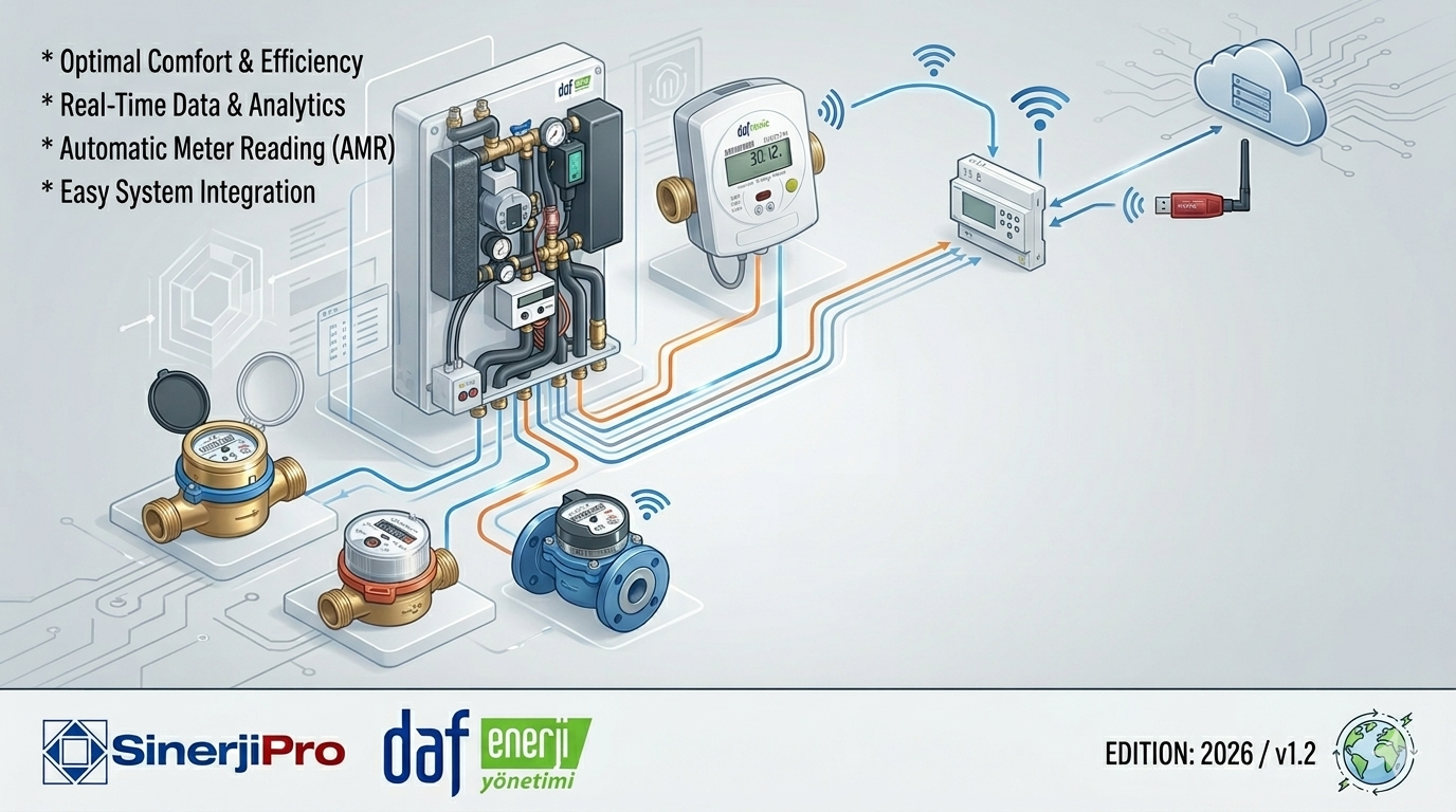 თურქეთის წამყვანი თბოცენტრების მწარმოებლის, DAF Energy-ს ინოვაციური ტექნოლოგია საქართველოში მაღალ სტანდარტს ამკვიდრებს Sinerji Pro Georgia-ს საინჟინრო გამოცდილებასა და მტკიცე სერვისულ მხარდაჭერასთან ერთად. საქართველოს ყველაზე პრესტიჟული პროექტებიდან ინდივიდუალურ საცხოვრებლებამდე, ყველა პროცესი პროფესიონალურად იმართება მოწინავე თბოცენტრების, ზუსტი თბო და წყლის მრიცხველების და ინტეგრირებული ჭკვიანი აღრიცხვის სისტემების მეშვეობით. DAF-ის მიერ სერტიფიცირებული ჩვენი ექსპერტთა გუნდები უზრუნველყოფენ ტექნიკურ უსაფრთხოებას, სამართლიან განაწილებას და მდგრად კომფორტს LoRa, უსადენო M-Bus და სადენიანი M-Bus ინფრასტრუქტურული გადაწყვეტილებების მეშვეობით.